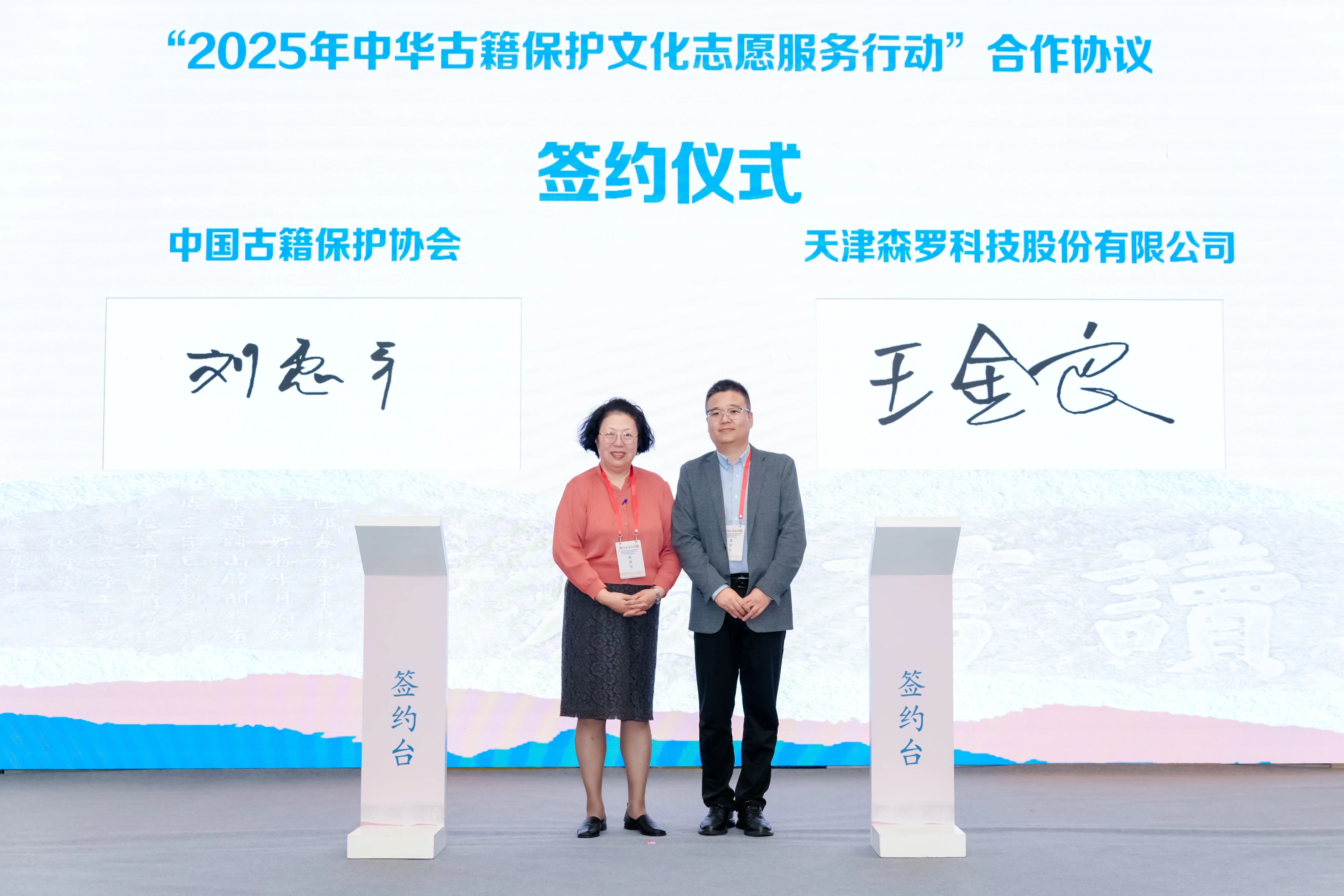 会议期间,中国古籍保护协会会长刘惠平与森罗股份等多家单位代表签署了合作协议,内容涵盖古籍保护志愿服务、研讨文集出版、专题片制作、捐赠宣传经费等,森罗股份也将持续通过技术协作与资源投入,助力古籍保护事业的高质量发展。