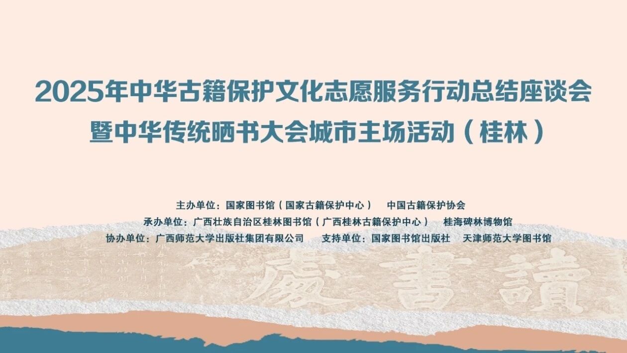 2025年10月21日至22日,“2025年中华古籍保护文化志愿服务行动总结座谈会暨中华传统晒书大会城市主场活动(桂林)”在广西桂林成功举办。活动由国家图书馆(国家古籍保护中心)、中国古籍保护协会主办,广西壮族自治区桂林图书馆(广西桂林古籍保护中心)、桂海碑林博物馆承办,广西师范大学出版社集团有限公司协办,国家图书馆出版社、天津师范大学图书馆支持。来自全国古籍保护中心代表、金石传拓专家、公益组织及媒体代表约70人参加了活动,森罗股份作为长期关注并助力古籍保护的企业代表受邀参会。